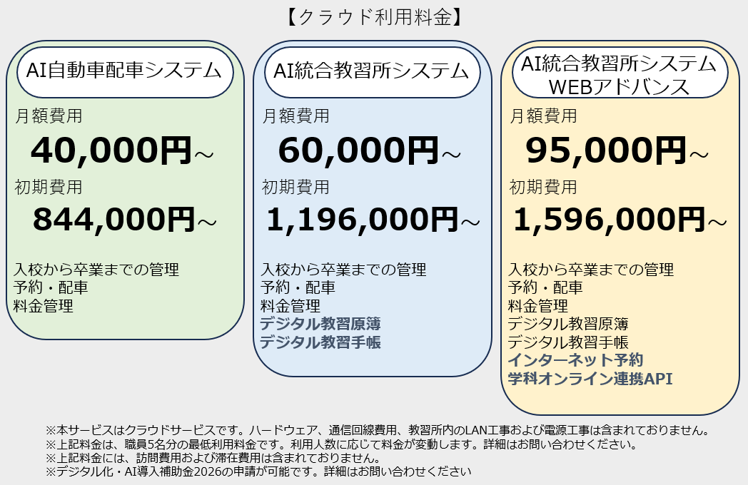各システムは段階的に機能拡張が可能で、教習所の成長やニーズに応じて柔軟に選択できます。