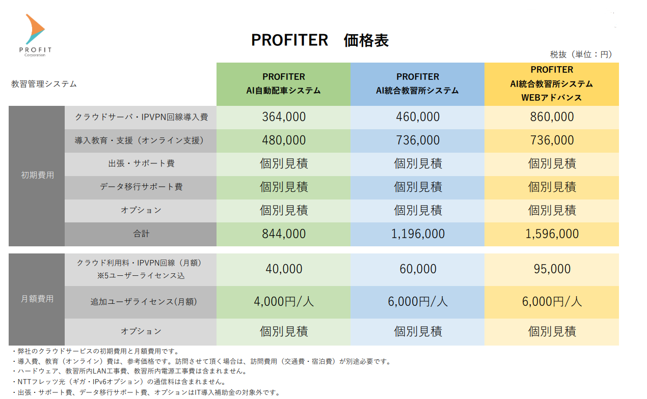 また、「PROFITER AI自動配車システム」および「PROFITER AI統合教習所システム」は、ITツール(2026年)として登録されています。これにより、本システムの導入にあたり、「中小企業デジタル化・AI導入支援事業費補助金2026」を活用できる可能性があります。